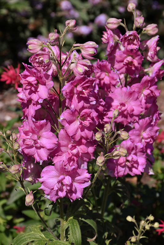 Pink Punch Larkspur is a fine choice for the garden, but it is also a good selection for planting in outdoor pots and containers. With its upright habit of growth, it is best suited for use as a 'thriller' in the 'spiller-thriller-filler' container combination; plant it near the center of the pot, surrounded by smaller plants and those that spill over the edges. It is even sizeable enough that it can be grown alone in a suitable container. Note that when growing plants in outdoor containers and baskets, they may require more frequent waterings than they would in the yard or garden. Be aware that in our climate, most plants cannot be expected to survive the winter if left in containers outdoors, and this plant is no exception. Contact our experts for more information on how to protect it over the winter months.