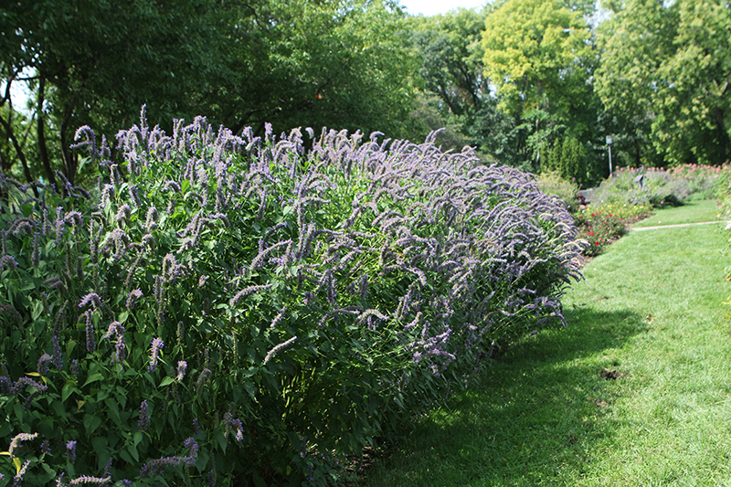 Blue Fortune Anise Hyssop will grow to be about 3 feet tall at maturity extending to 4 feet tall with the flowers, with a spread of 3 feet. It tends to be leggy, with a typical clearance of 1 foot from the ground, and should be underplanted with lower-growing perennials. It grows at a fast rate, and under ideal conditions can be expected to live for approximately 6 years. As an herbaceous perennial, this plant will usually die back to the crown each winter, and will regrow from the base each spring. Be careful not to disturb the crown in late winter when it may not be readily seen!