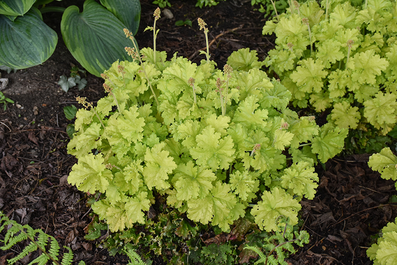 Twist of Lime Coral Bells features dainty spikes of white bell-shaped flowers rising above the foliage from early to mid summer. Its attractive crinkled lobed leaves emerge chartreuse in spring, turning lime green in colour with hints of yellow the rest of the year.