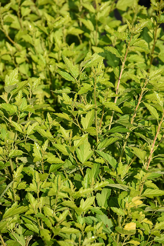 A tidy and compact shrub with stunning bright yellow foliage; white flower clusters in spring; interesting peeling papery bark; extremely durable, a superb color accent